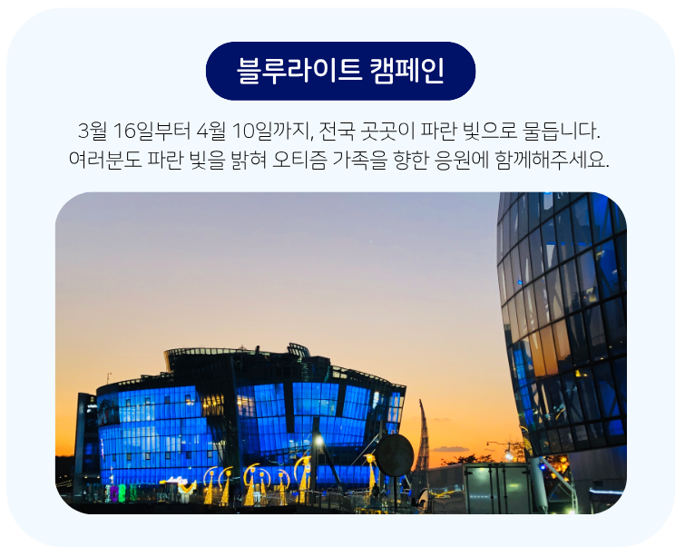 블루라이트 캠페인은 오티즘을 향한 인식을 개선하고, 실질적인 변화를 만들어가길 바라는 희망의 움직임입니다.